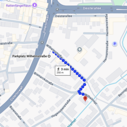 (Wilhelmstraße 2, 31785 Hameln): Maximale Parkdauer 2 h, 250 m zur Praxis.
